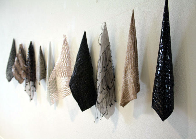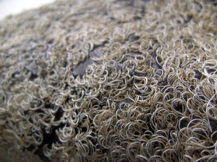 of hairs of a caterpillar. It resulted in a collection of eleven samples, sizes 50x50cm, handmade and silkscreen printed.