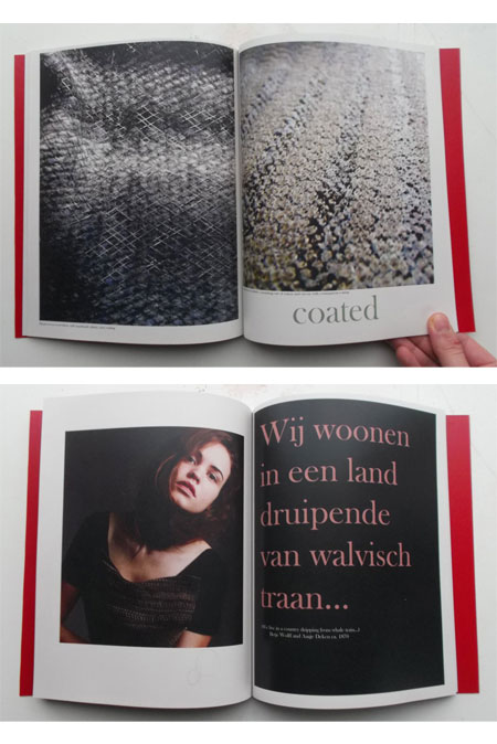 Hand-woven wool fabric with handmade plastic yarn coating. Images of the book BALAENA. in this book I show the atmosphere of the collection inculding inspiration pictures, objects and texts.