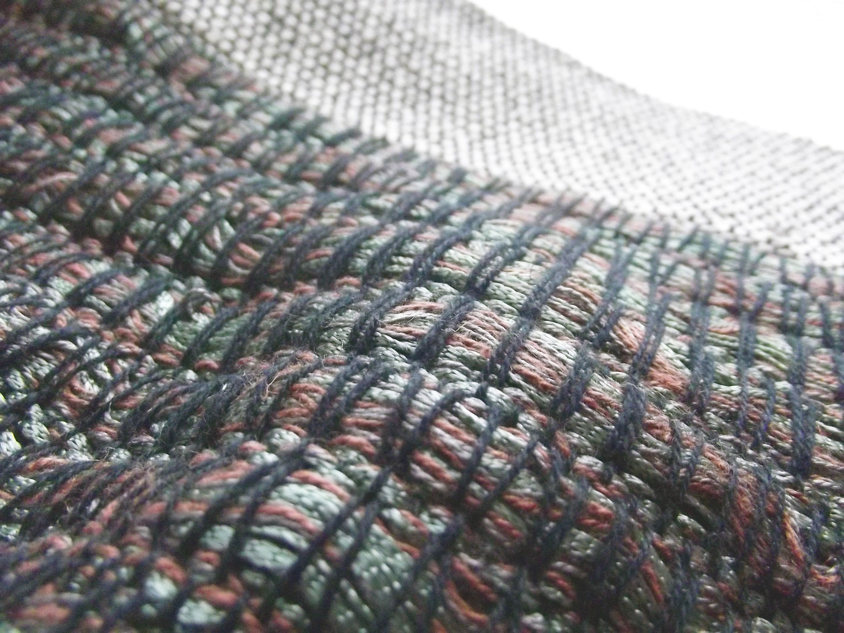 Hand-woven fabric consisiting out of cotton, linen and a synthetic yarn.
