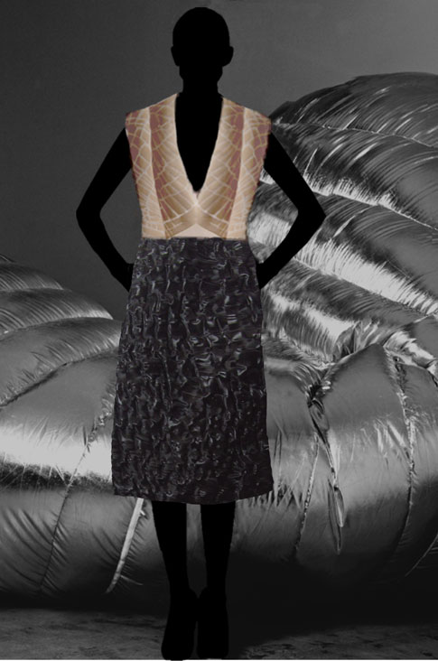 Fabric collection for fashion. As an inspiration I took a shiny shield of a bug, a structured wing of a dragonfly, the dew drops on an insect's eye and the rythm