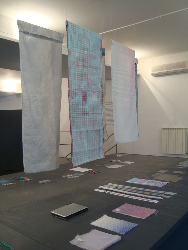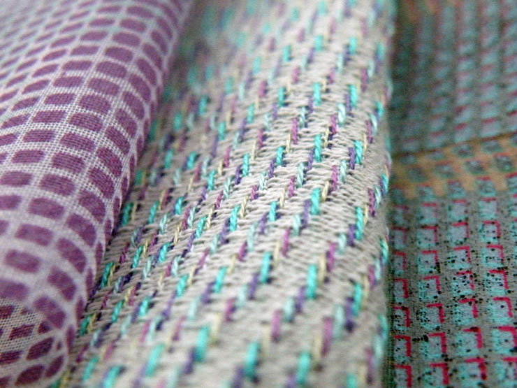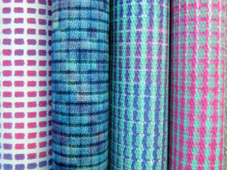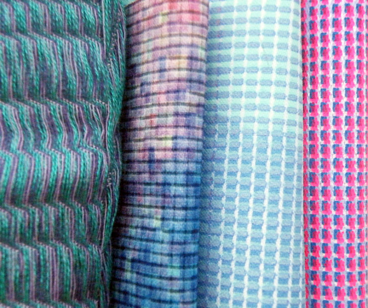 Woven fabric at Audax Textile Museum, digital printed fabric at Audax Textile Museum, two silkscreen printed fabrics at the Design Academy workshop